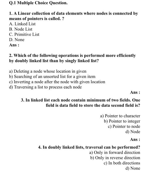 Solved Q 1 Multiple Choice Question 1 A Linear Collection Chegg Com