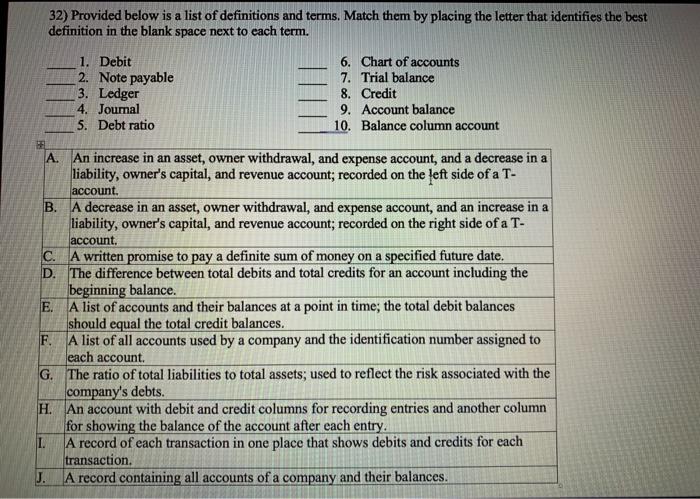 Solved 32 Provided Below Is A List Of Definitions And Chegg Com